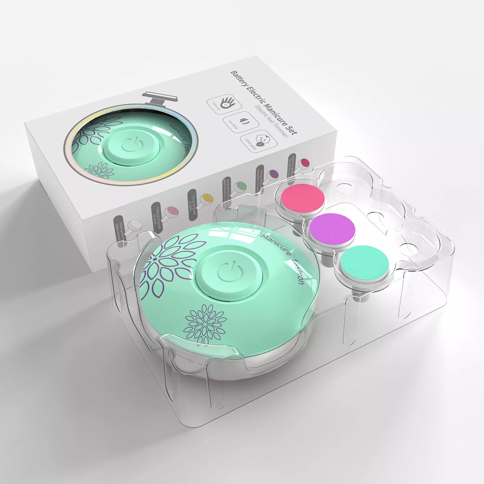 Električni nohti tihi motor omogoča obrezovanje brez stresa, tudi ko vaš dojenček spi. Njegove kompaktne velikosti je kot nalašč za potovanja, ki se enostavno prilega v vrečke za plenice. Ne glede na to, ali ste doma ali na poti, ta otroški 3-glavi električni nohti poljski komplet za nego zagotavljanja nohtov vašega dojenčka varno in udobno negovane.