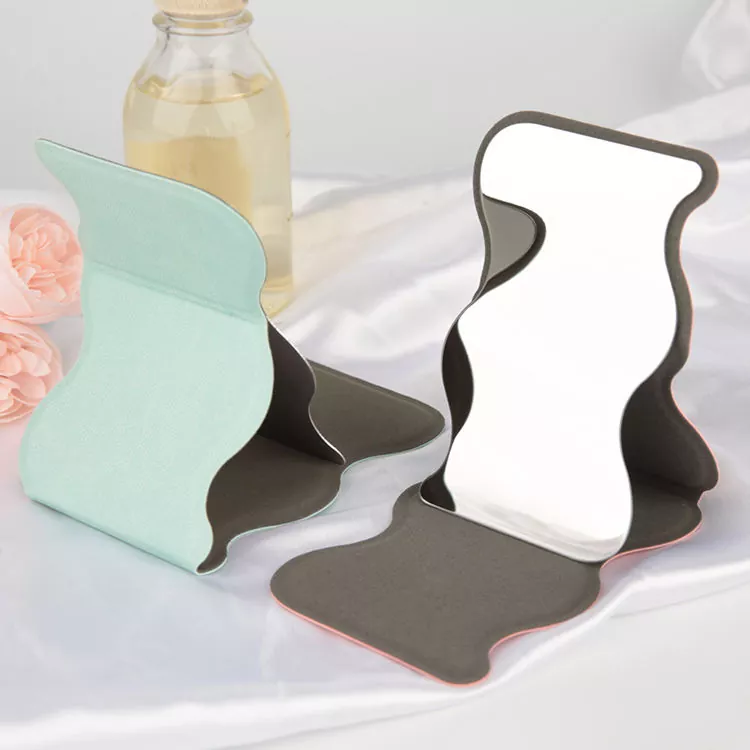 Edinstveno valovito zložljivo žepno ogledalo združuje elegantno ukrivljeno silhueto s praktično funkcionalnostjo. Ovitek iz mehkega PU usnja ščiti stekleno površino visoke ločljivosti in zagotavlja jasen odsev brez popačenj za natančno ličenje in nego kože. Njegovo zložljivo stojalo omogoča prostoročno uporabo, zaradi česar je idealno za potovanja, prevoze in hitre popravke na poti.