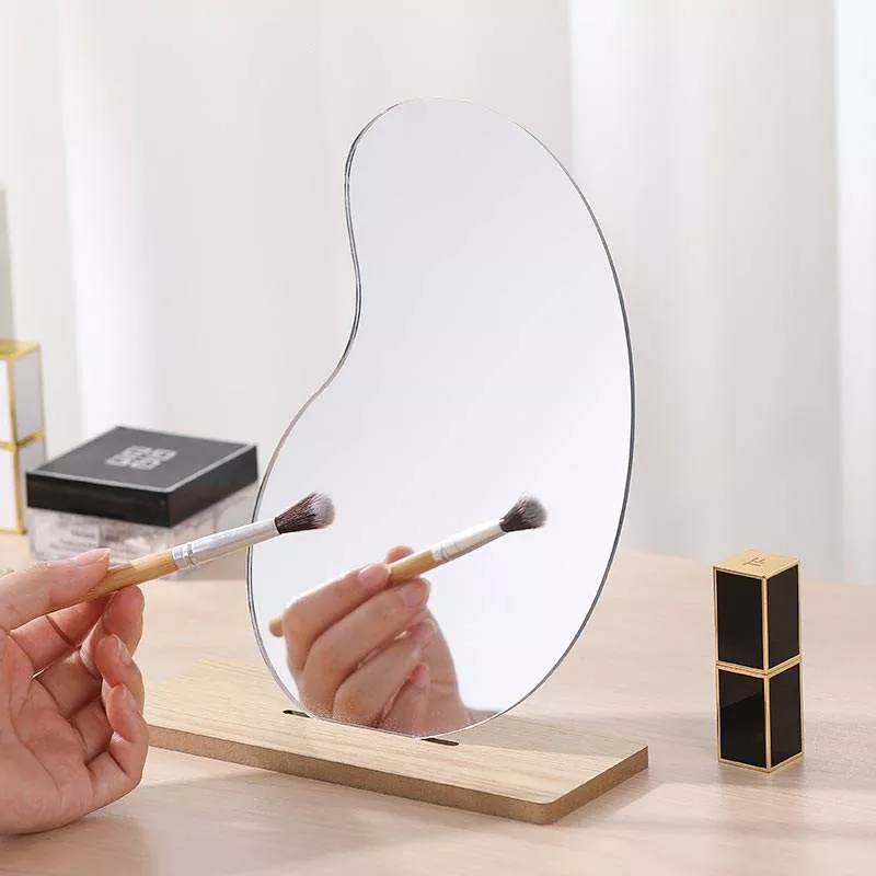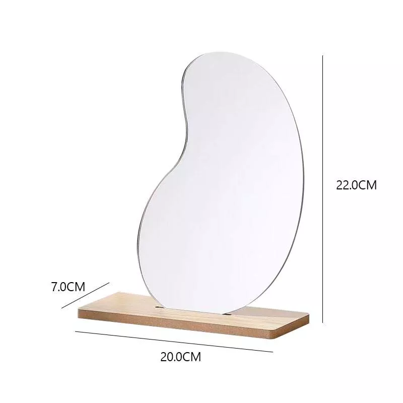 To nepravilno valovito namizno ogledalo ima minimalistično, umetniško silhueto, ki se neopazno zlije s sodobnim dekorjem doma. Izdelan iz prozornega stekla visoke ločljivosti in gladkega lesenega podstavka zagotavlja odsev brez popačenj, ki je idealen za nanašanje ličil, rutine nege kože in vsakodnevno nego.