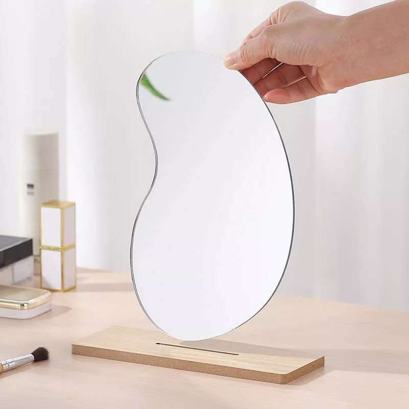 Nepravilno valovito namizno ogledalo, izdelano iz vrhunskega stekla HD, ponuja oster odsev brez popačenj za natančen nanos ličil, preverjanje nege kože in vsakodnevno nego. Zagotavlja jasen pogled za brezhibne rezultate ličenja.