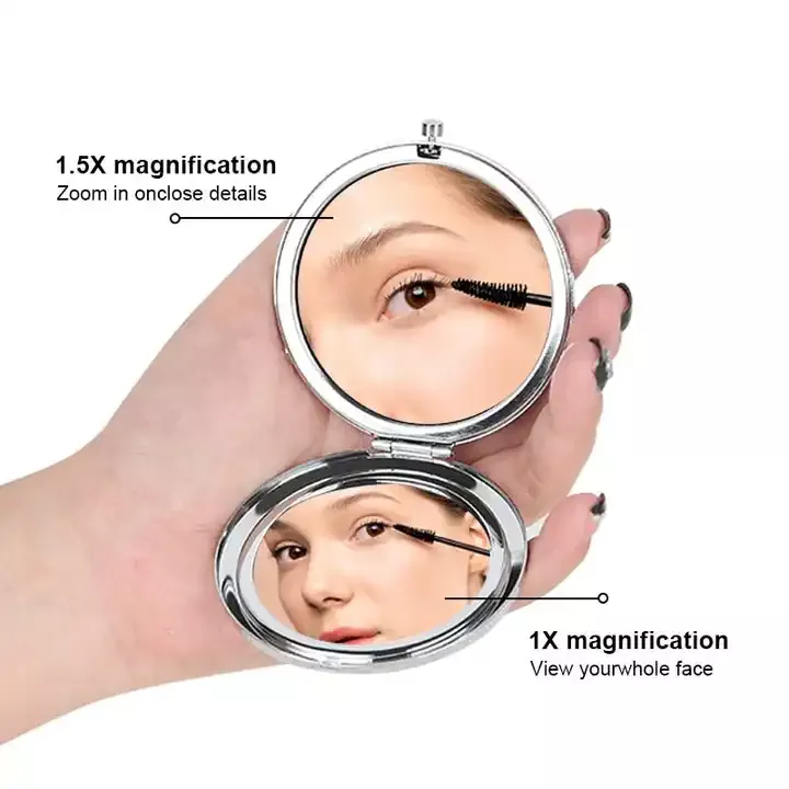 To žepno ogledalo za ličenje uporablja stekleno ogledalo visoke ločljivosti, ogledalo je ravno, druga stran je dvakrat povečana, vam lahko pomaga odstraniti ličila, v kombinaciji z majhno velikostjo, nosite s seboj, ličila lahko popravite kadarkoli in kjer koli.