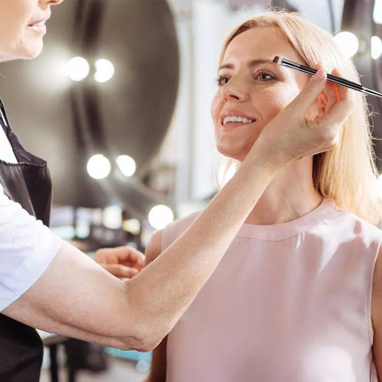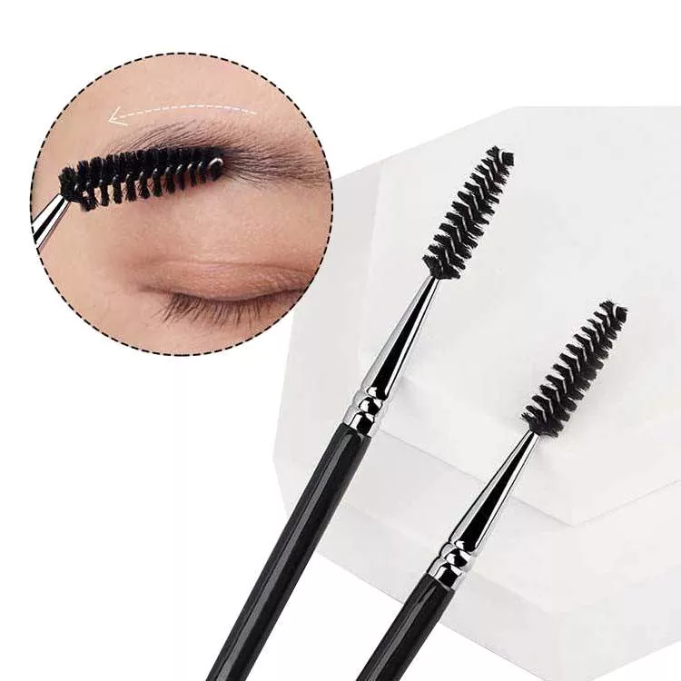 Eye Makeup Brush Single je orodje z dvojnim koncem in mehkimi sintetičnimi ščetinami. Uporabite poševni čopič za natančno definiranje obrvi in nanos črtala za oči, nato pa uporabite spoolie za urejanje in mešanje dlačic obrvi za poliran, naraven videz oči.